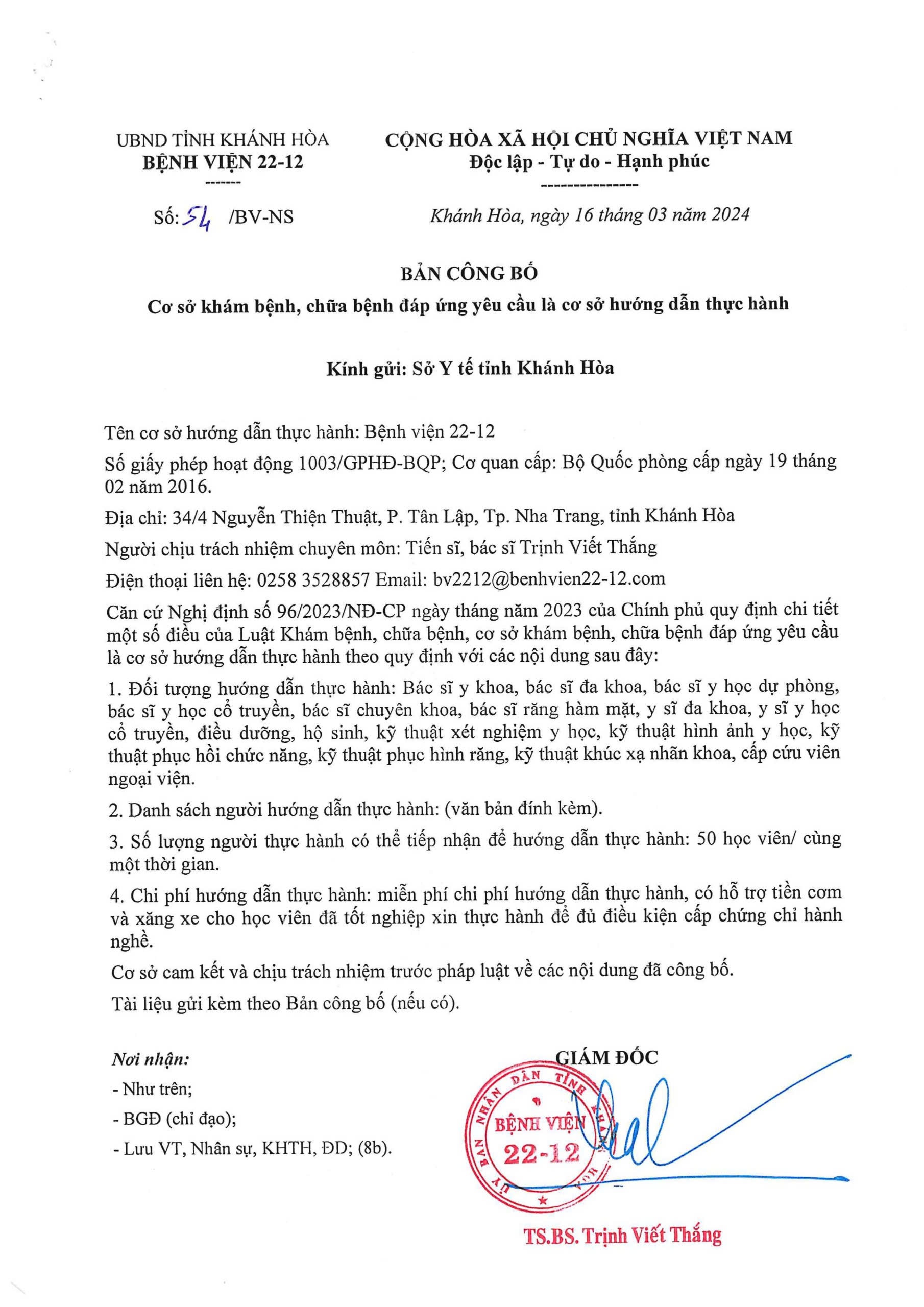 Mọi chi tiết xin vui lòng liên hệ:Bệnh viện 22-12Đ/c: 34/4 Nguyễn Thiện Thuật – Nha Trang