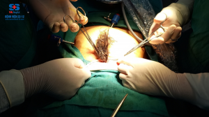 Phẫu thuật nội soi u bì buồng trứng hai bên, vết mổ cũ hai lần