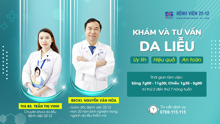 Phòng khám Da liễu Bệnh viện 22-12 với đội ngũ bác sĩ có nhiều năm kinh nghiệm trong ngành da liễu thẩm mỹ, cùng những kỹ thuật viên được đào tạo bài bản ở các cơ sở thẩm mỹ uy tín trong nước và nước ngoài … mang tới chất lượng khám và điều trị tốt nhất cho khách hàng.