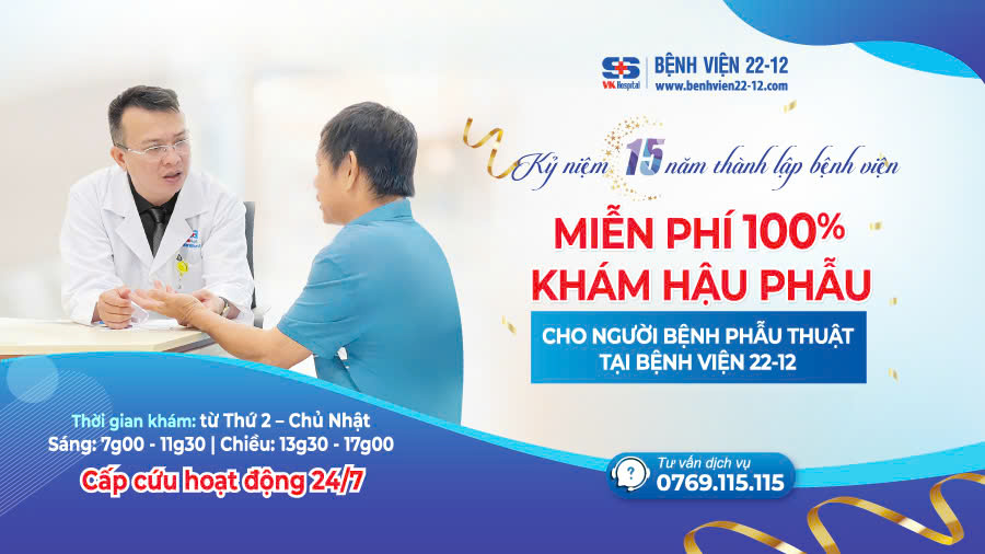 Để đăng ký khám và tư vấn, vui lòng liên hệ Hotline: 0769 115 115 hoặc Fanpage chính thức của Bệnh viện 22-12.
