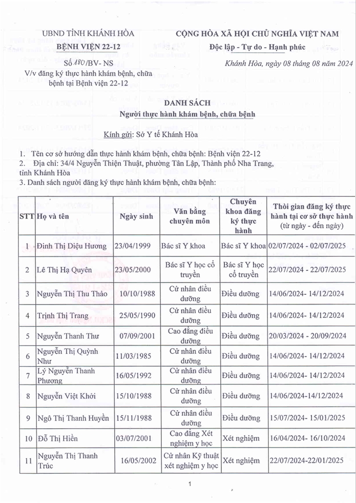 Danh sách người thực hành khám, chữa bệnh năm 2024 (cập nhật)