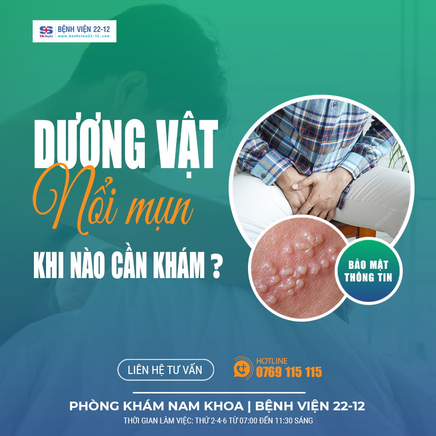 Nổi mụn dương vật thường xảy ra ở mọi đối tượng nam giới. Đặc biệt là những người có quan hệ tình dục không an toàn hay vệ sinh chăm sóc vùng kín không đảm bảo. Nam giới bị mụn dương vật có thể là mụn thịt, mụn cóc, mụn nước gây ngứa hoặc không ngứa. Nam giới cần đi khám khi gặp các trường hợp dương vật nổi mụn sau: