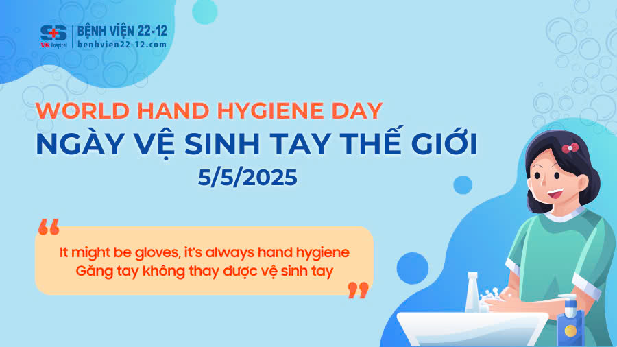 Thực hiện theo chỉ đạo tại Công văn số 2050/SYT-NVYD ngày 28/4/2025 của Sở Y tế Khánh Hòa và Hưởng ứng chiến dịch thường niên do Tổ chức Y tế Thế giới (WHO) phát động, Bệnh viện 22-12 phát động Phong trào hưởng ứng Ngày Vệ sinh tay Thế giới năm 2025 với chủ đề toàn cầu: “It might be gloves, it’s always hand hygiene” – Găng tay không thay thế việc vệ sinh tay!
