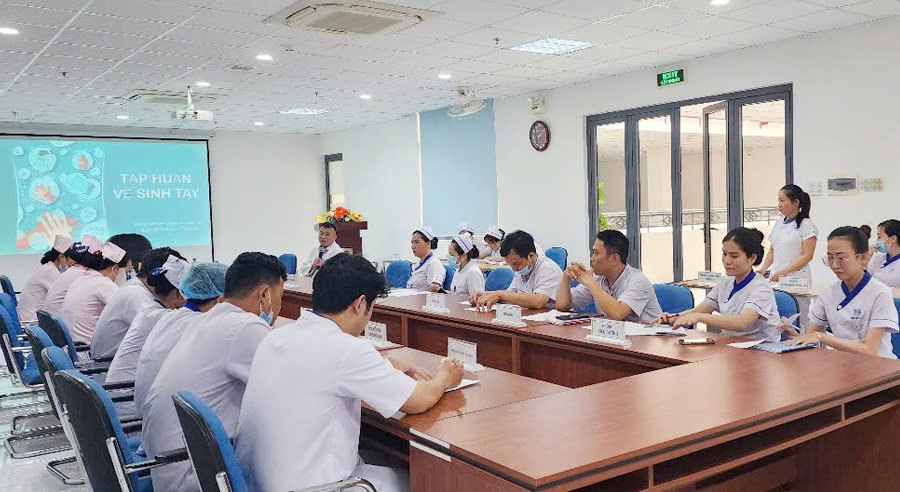 Cũng trong dịp này, Khoa Kiểm soát nhiễm khuẩn Bệnh viện 22-12 tổ chức tập huấn vệ sinh tay định kỳ cho nhân viên y tế làm việc tại các khoa lâm sàng và cận lâm sàng. Tập huấn nhấn mạnh vai trò và tầm quan trọng của việc vệ sinh tay đúng cách đúng thời điểm, sử dụng găng tay đúng chỉ định và không thay thế cho vệ sinh tay.