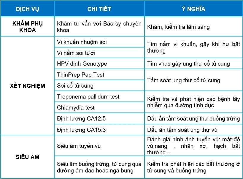 Tầm soát bệnh phụ khoa - nữ gia đình (cơ bản)