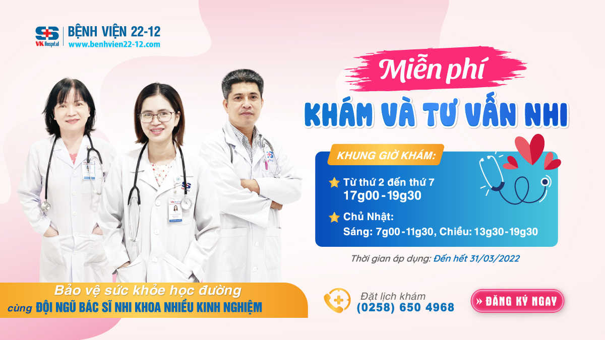 Con cái khỏe mạnh là hạnh phúc của mỗi bậc làm cha mẹ và chăm sóc sức khỏe cho con luôn là mục tiêu hàng đầu. Thấu hiểu nổi niềm đó, Bệnh viện 22-12 triển khai chương trình Bảo vệ sức khỏe học đường “KHÁM VÀ TƯ VẤN NHI MIỄN PHÍ” bao gồm: