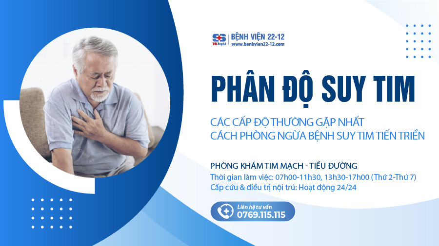 Hiện nay, có nhiều tiêu chí để phân độ suy tim từ nặng đến nhẹ khác nhau. Tuy nhiên, trên thế giới cũng như tại Việt Nam thì suy tim thường được phân độ theo Hiệp hội Tim mạch Hoa kỳ (NYHA). Theo NYHA, việc phân độ suy tim sẽ dựa vào mức độ hoạt động thể lực cũng như triệu chứng khó thở của bệnh nhân.