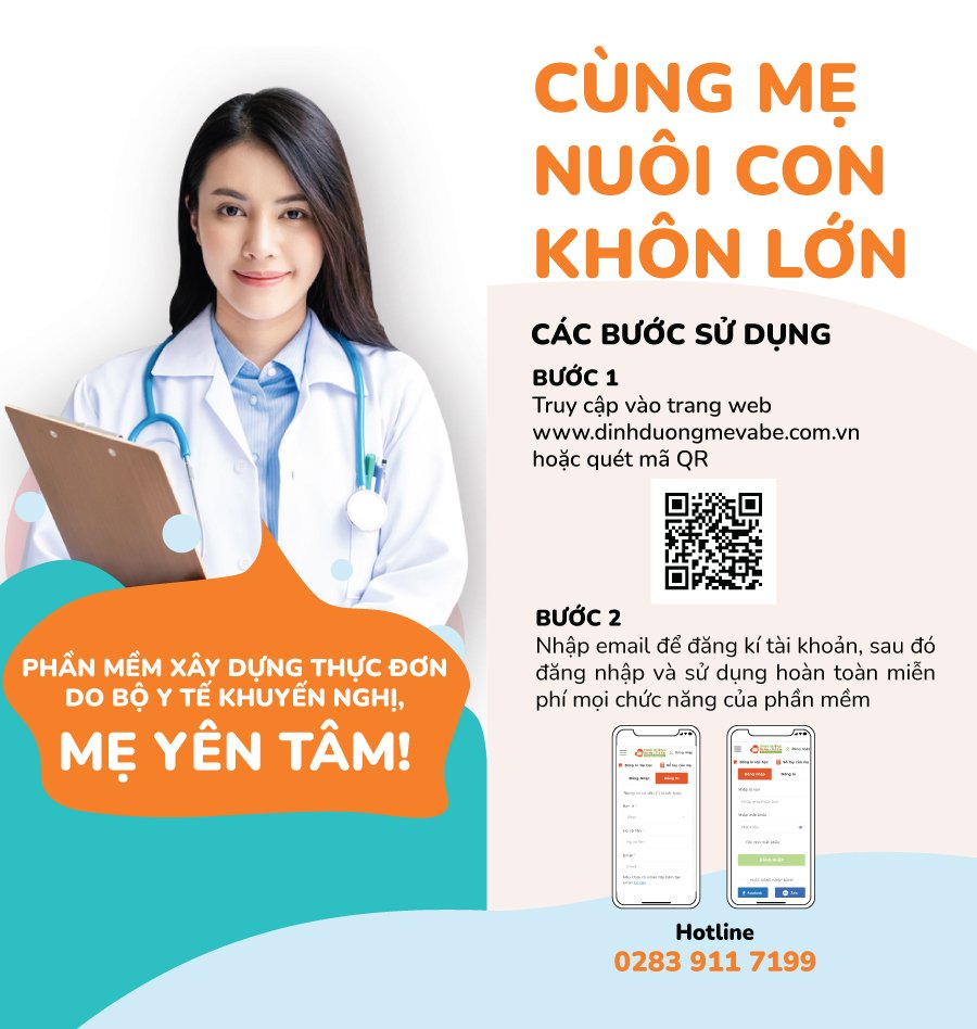 Phần mềm được cung cấp hoàn toàn miễn phí tại website: https://www.dinhduongmevabe.com.vn/ Người dùng chỉ cần đăng ký một tài khoản để sử dụng đầy đủ các chức năng.