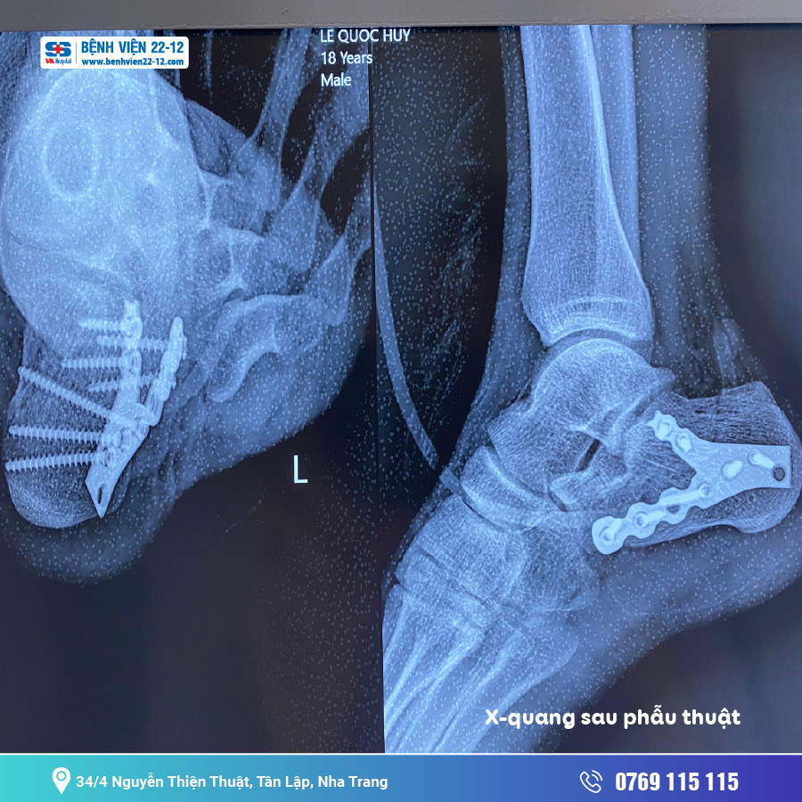 Khoa Ngoại Bệnh viện 22-12 với đội ngũ bác sĩ trình độ chuyên môn cao, điều dưỡng nhiều năm kinh nghiệm, phong cách phục vụ chuyên nghiệp và tinh thần tận tâm trong công việc, hết lòng với bệnh nhân. Bên cạnh đó, nhằm mang lại hiệu quả tốt nhất cho người bệnh, đội ngũ bác sĩ của Khoa không ngừng cập nhật các phương pháp điều trị tiên tiến để đáp ứng nhu cầu chăm sóc sức khỏe toàn diện của người bệnh. Bệnh viện cũng trang bị CT-Scan 128 lát hiện đại giúp các Bác Sĩ có thể quan sát rõ đa chiều ổ gãy và lên phương án phẫu thuật tốt nhất cho bệnh nhân. Hệ thống máy CARM giúp kiểm tra trong mổ, kiểm soát ổ gãy giúp tăng tỷ lệ chính xác cho cuộc mổ.