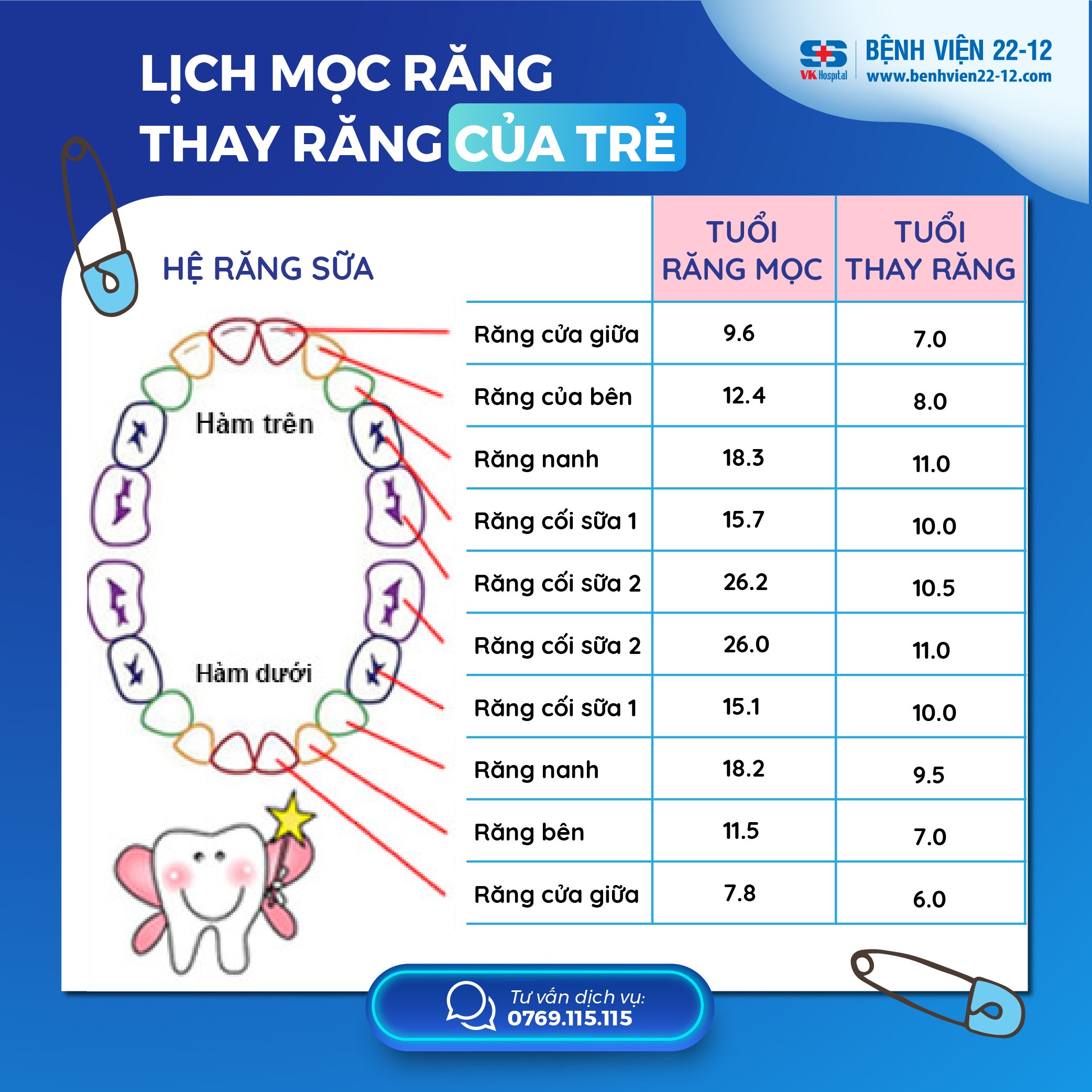 – Răng nanh (răng số 3): 10 – 11 tuổi