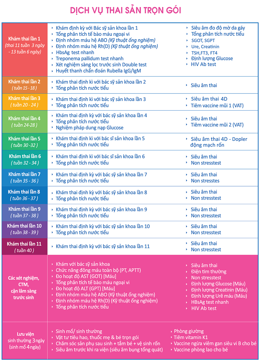 – Được linh động lựa chọn gói chăm sóc thai sản phù hợp theo tuổi thai, loại phòng lưu bệnh theo yêu cầu.