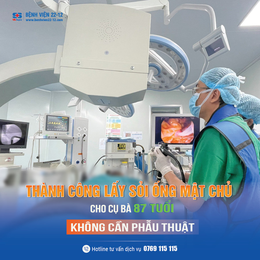 Thành công lấy sỏi ống mật chủ cho cụ bà 87 tuổi