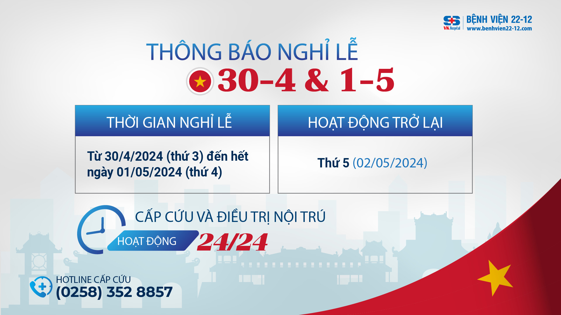 – Ngày 02/05/2024 (thứ 5) Bệnh viện trở lại làm việc bình thường sau nghỉ lễ.