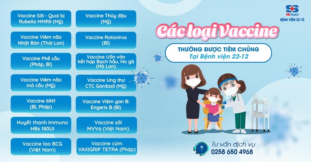 Các loại vắc xin Bệnh viện nhận tiêm hầu hết các vaccine, trong đó, các vaccine thường xuyên được tiêm chủng bao gồm: